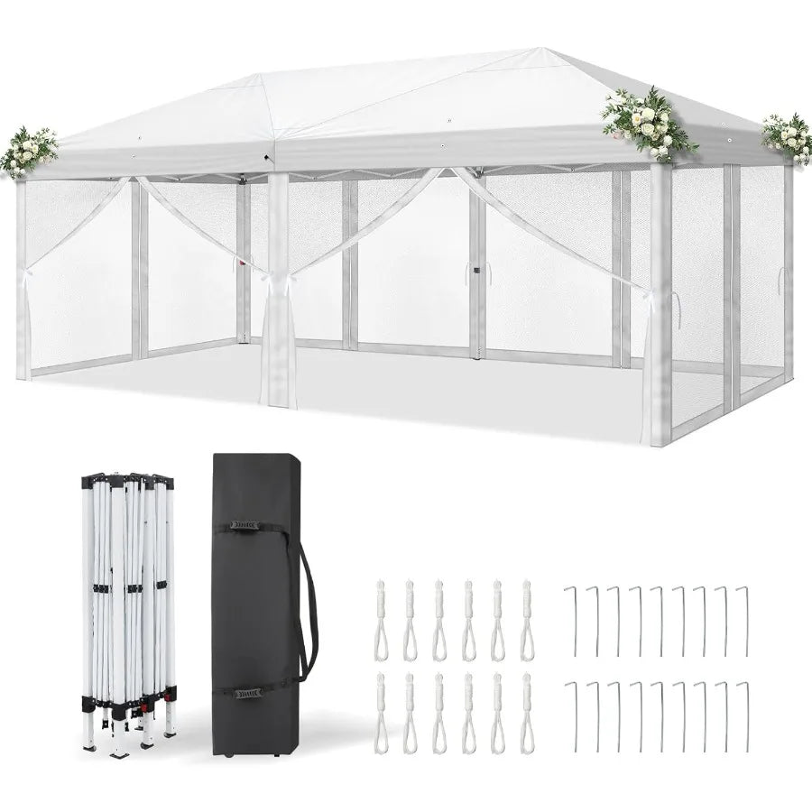 Create instant shade and comfort with a versatile pop up canopy gazebo that includes sidewalls and netting screens.
