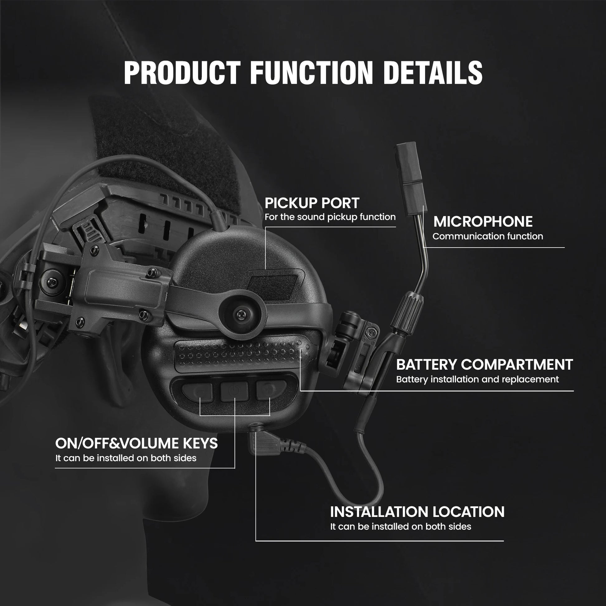 - Flexible setup: swap the microphone and lower cable to either ear, powered by 2x AAA batteries (not included); compatibility with helmet rails via the Helmet Rail Adapter Kit (sold separately).