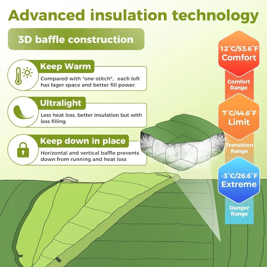 - 3-in-1 versatility: you can switch between a traditional rectangular bag, unzip into a compact down camping blanket, or wear it as a wrap for quick warmth; reinforced corners keep it secure on rough terrain.